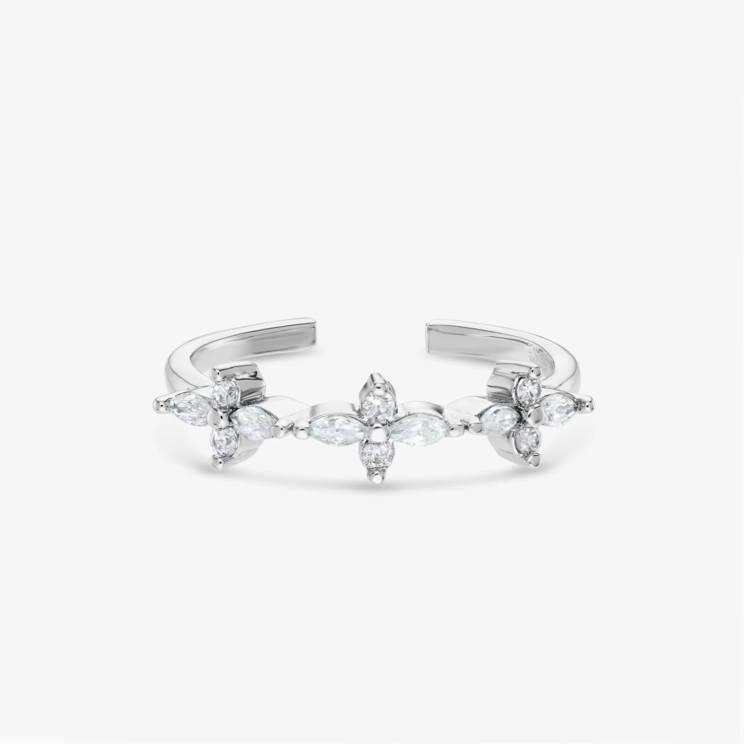 Cette jolie bague ajustable est composée de plusieurs petites pierres blanches en forme de fleurs. 🌸✨
