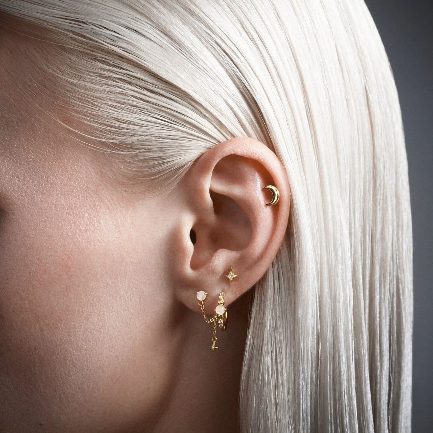 Puce en forme de petite étoile avec une véritable pierre de Lune. 🌙✨
