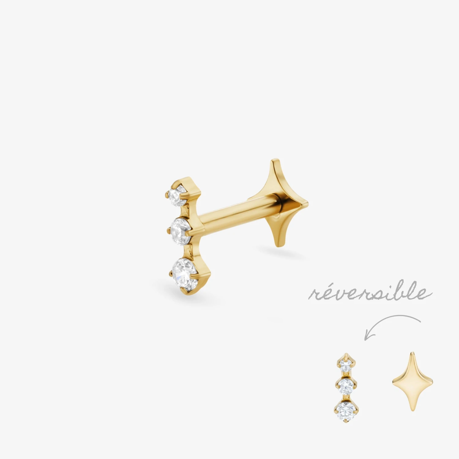 ・ Piercing Earfinity© : Mécanisme de fermeture threadless, la tige courbe se positionne dans la barre à l’avant du bijou.