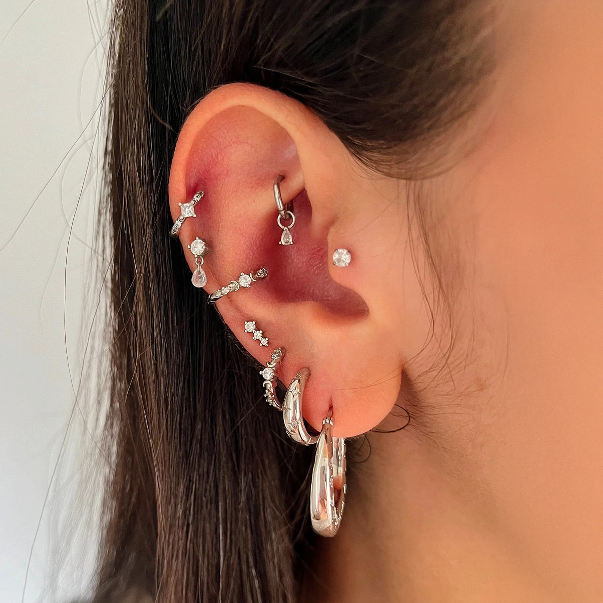 ・ Boucle d’oreille ornée de 3 pierres blanches