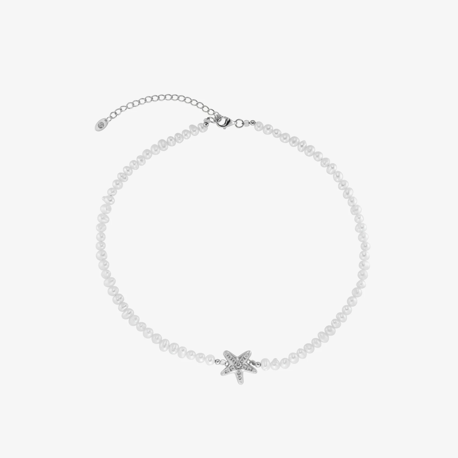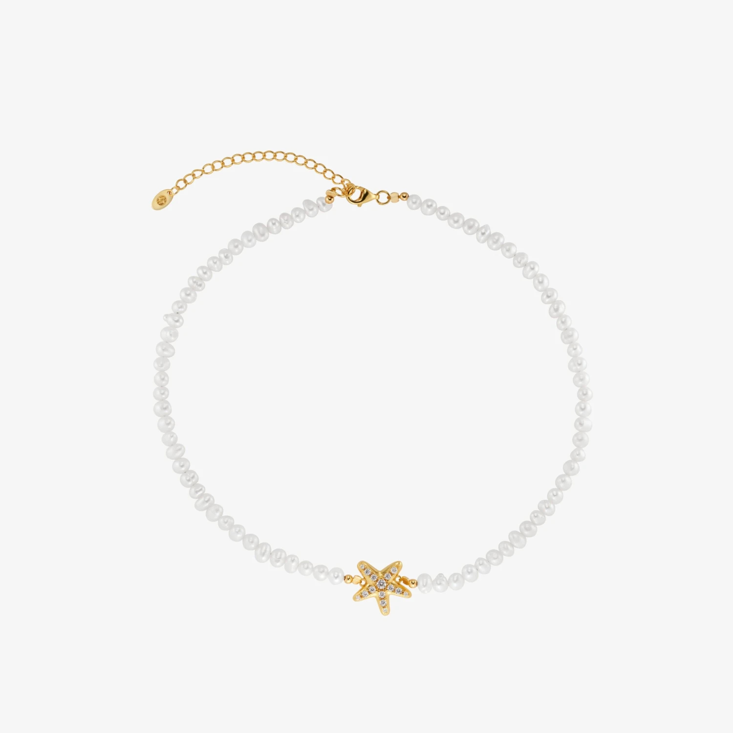Collier de perles de culture ras de cou accompagnée d’une petite étoile de mer. 🐚✨