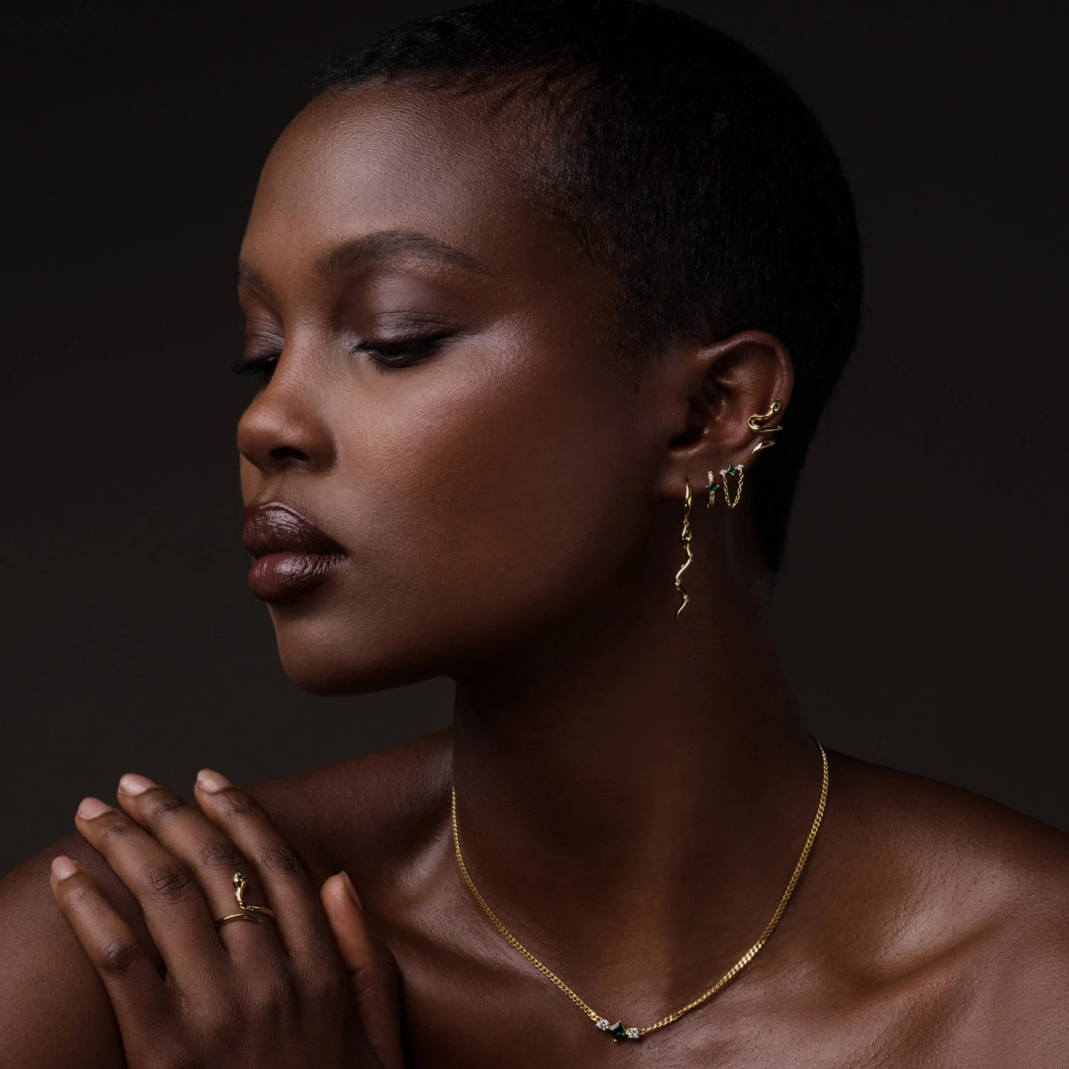 L’earcuff Naja est l’une de nos pièces phares de la collection Dune : cet élégant faux-piercing s’enlace délicatement autour votre oreille. 🐍