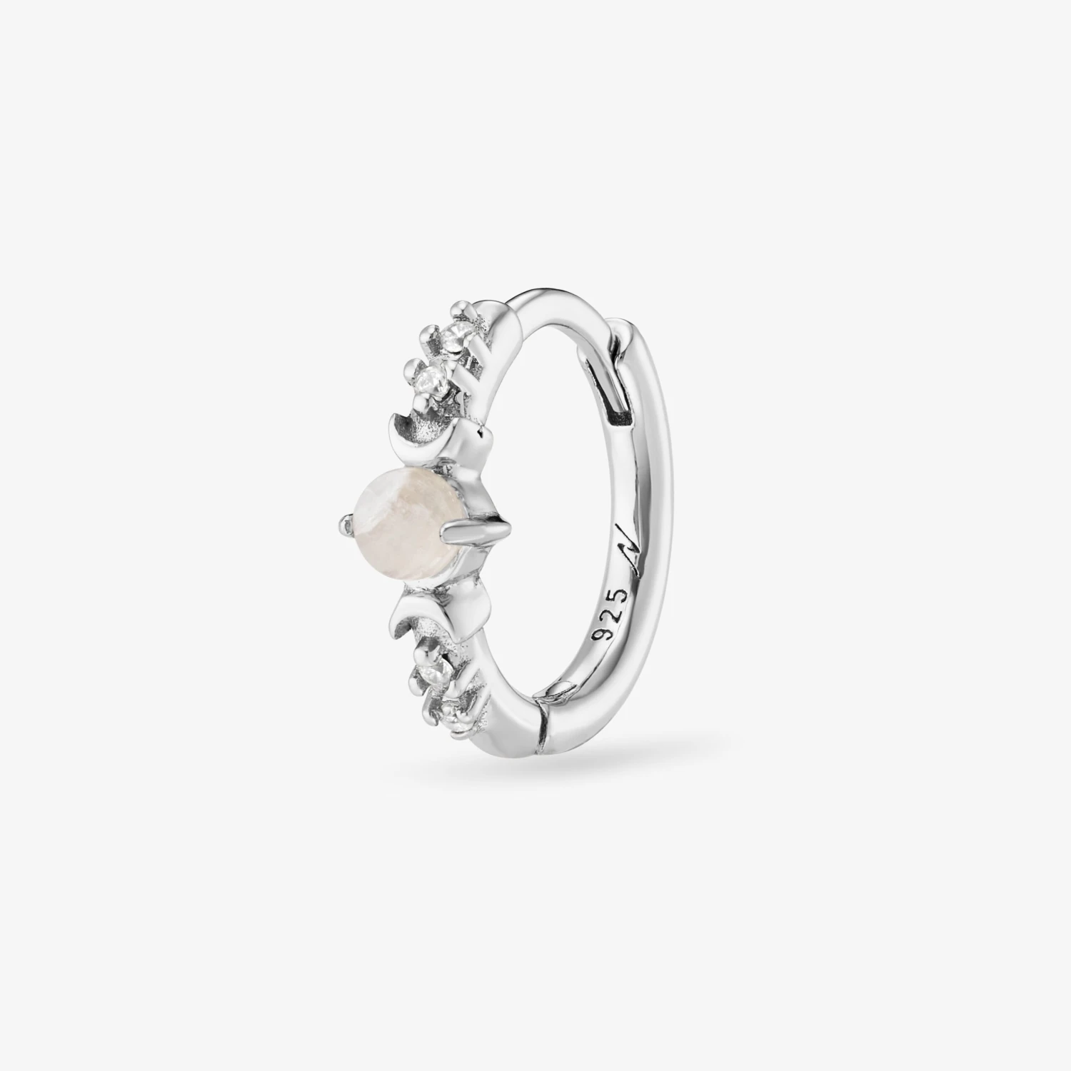 Cette petite boucle d’oreille est sertie d’une vĂ©ritable pierre de Lune. đ