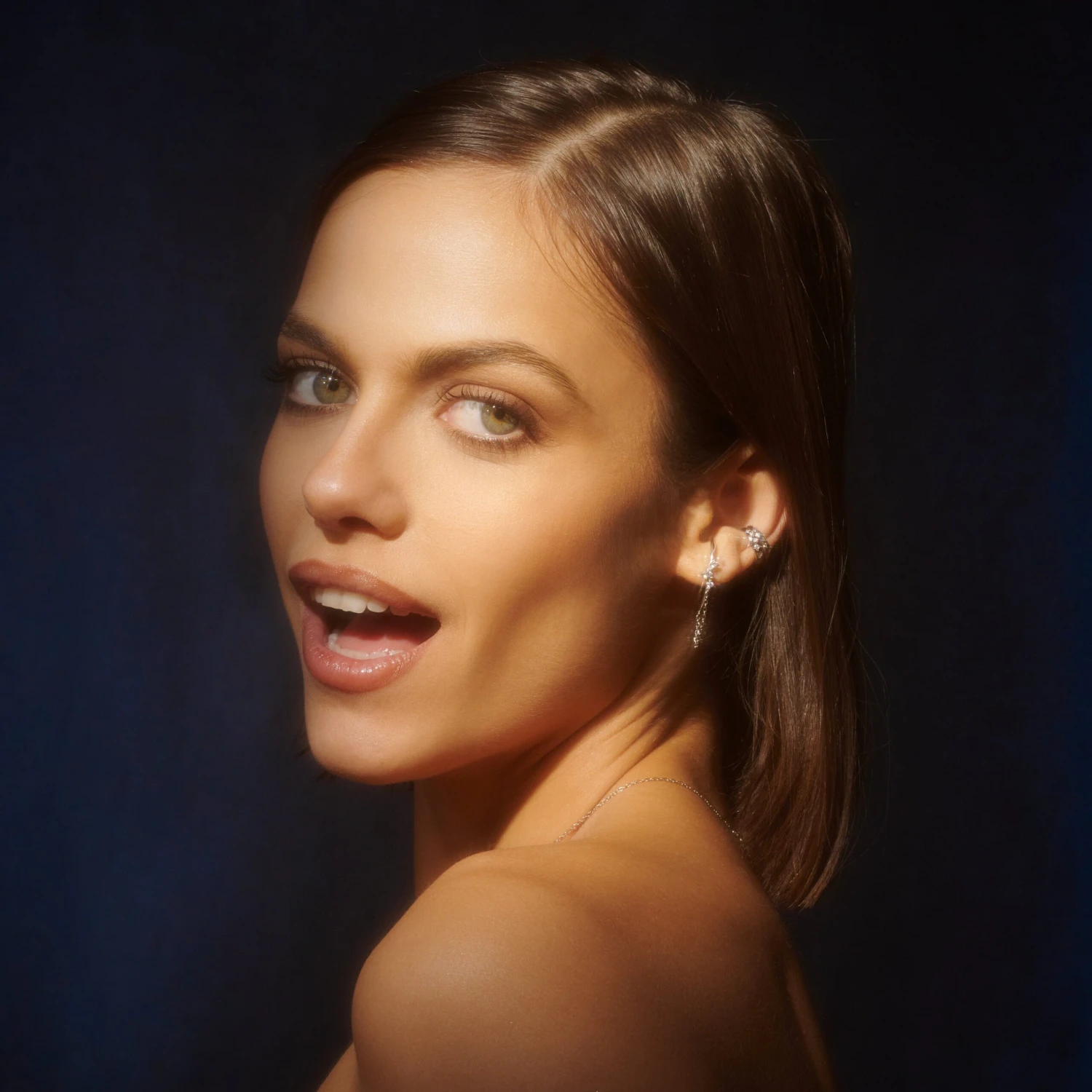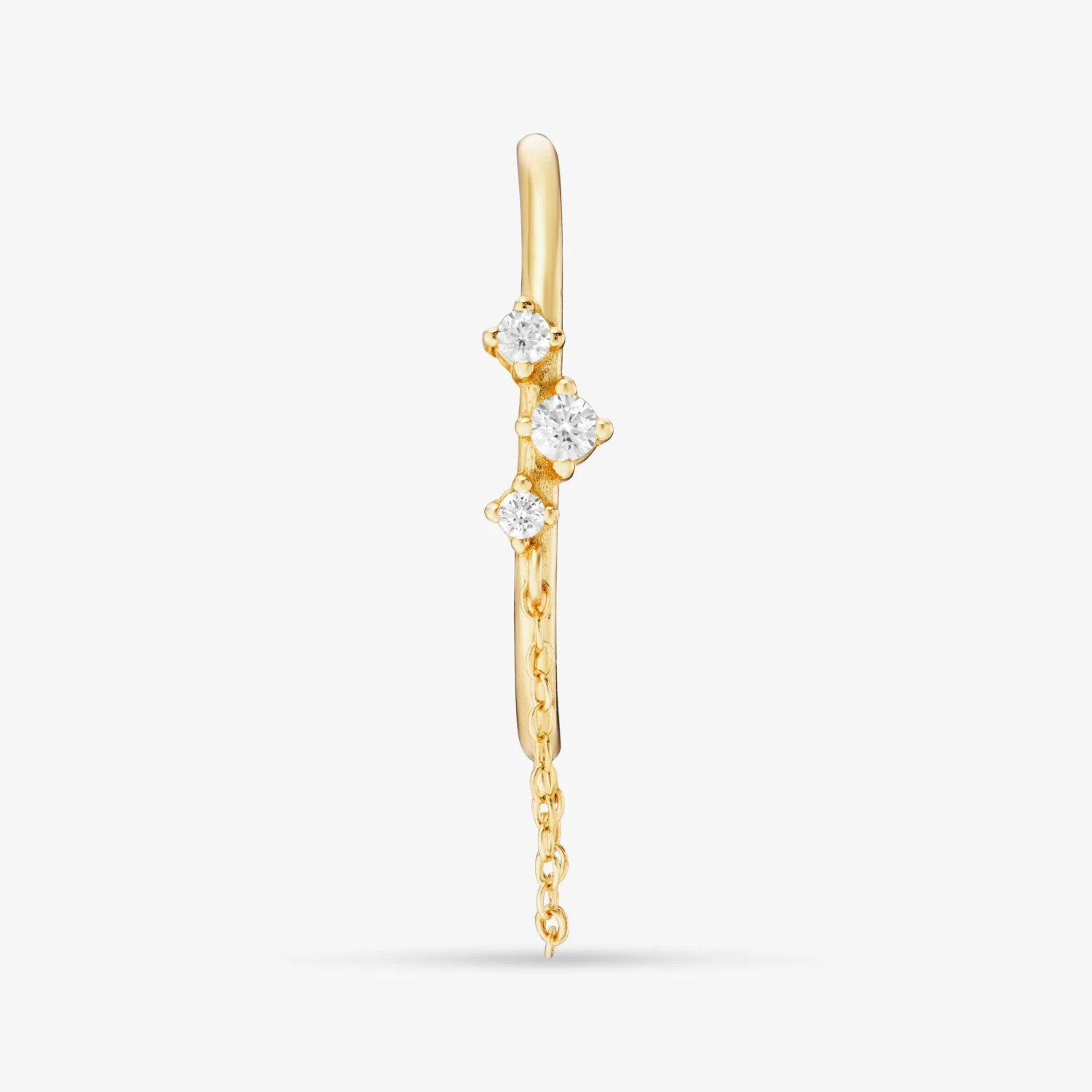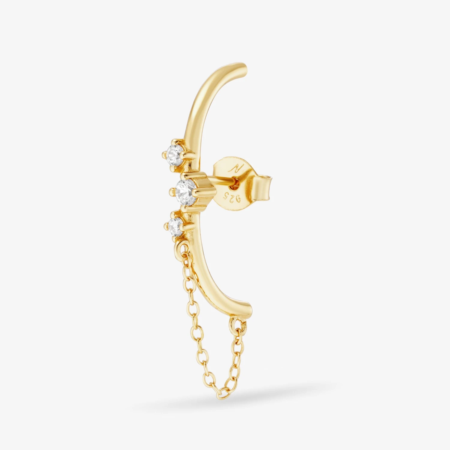 ・ Boucle d’oreille qui entoure le lobe de l’oreille avec 3 petites pierres blanches et une chaîne