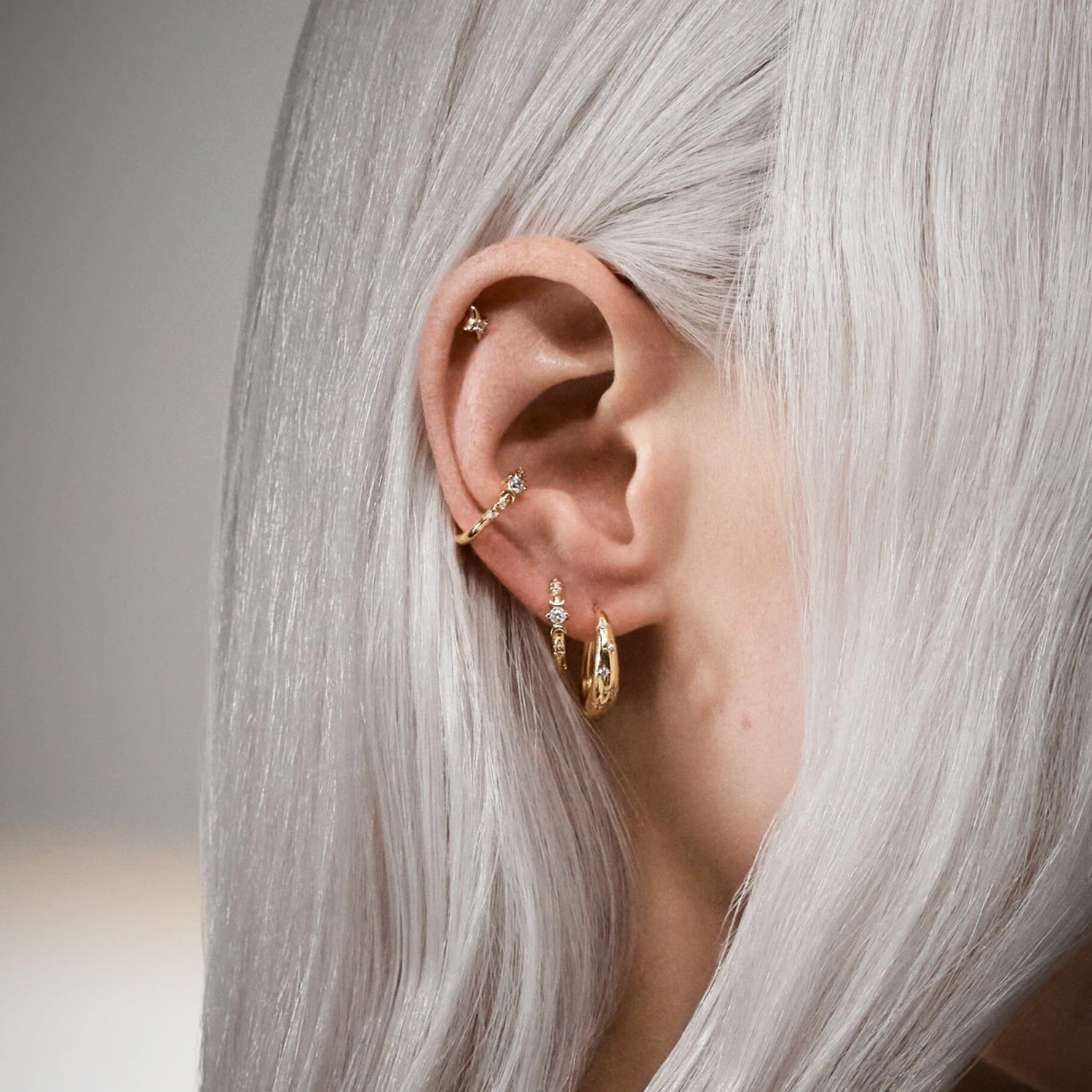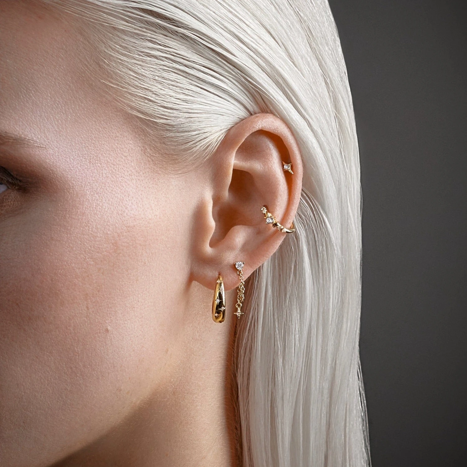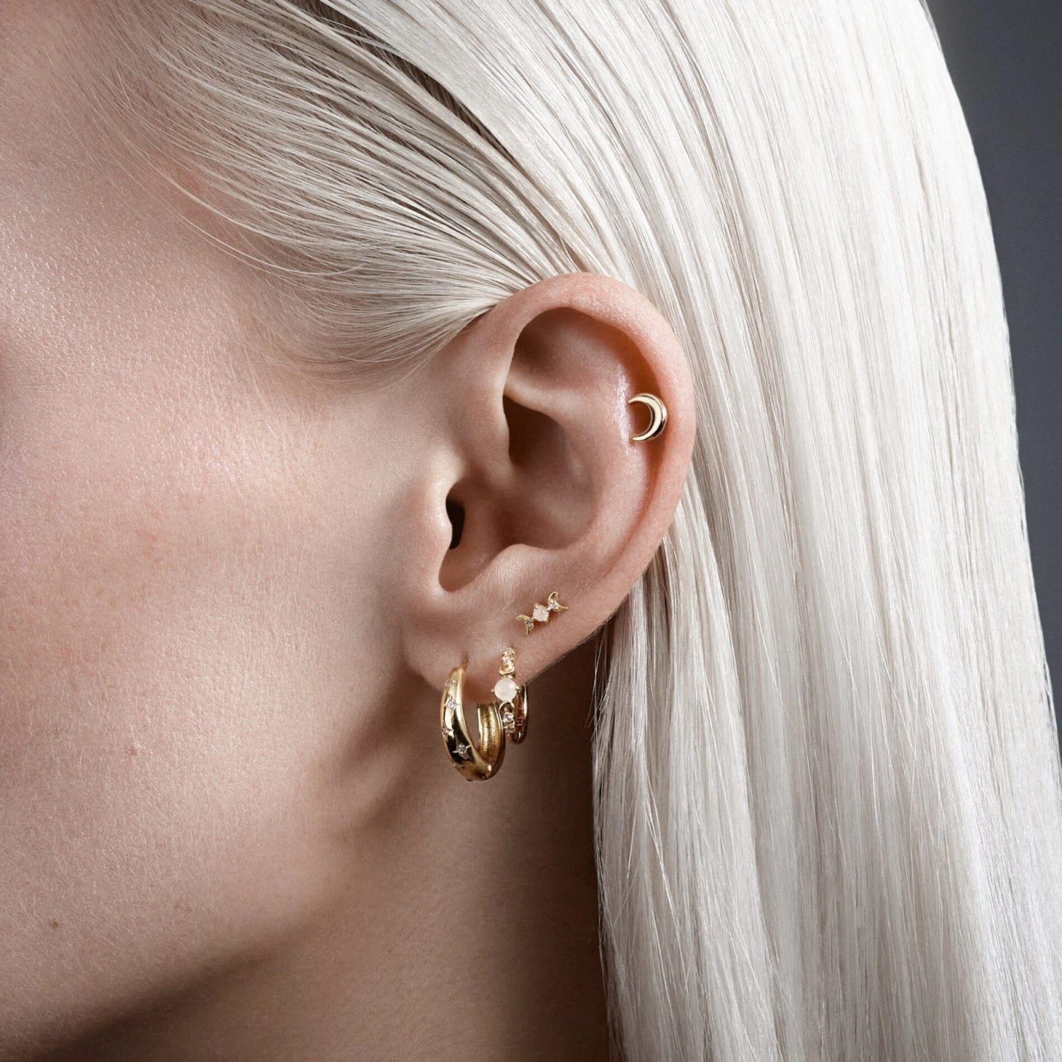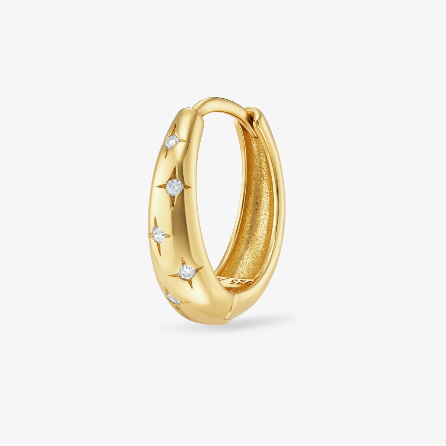 Créole en forme de lune, sertie de petites étoiles en zircons blancs. 🌙🤍
