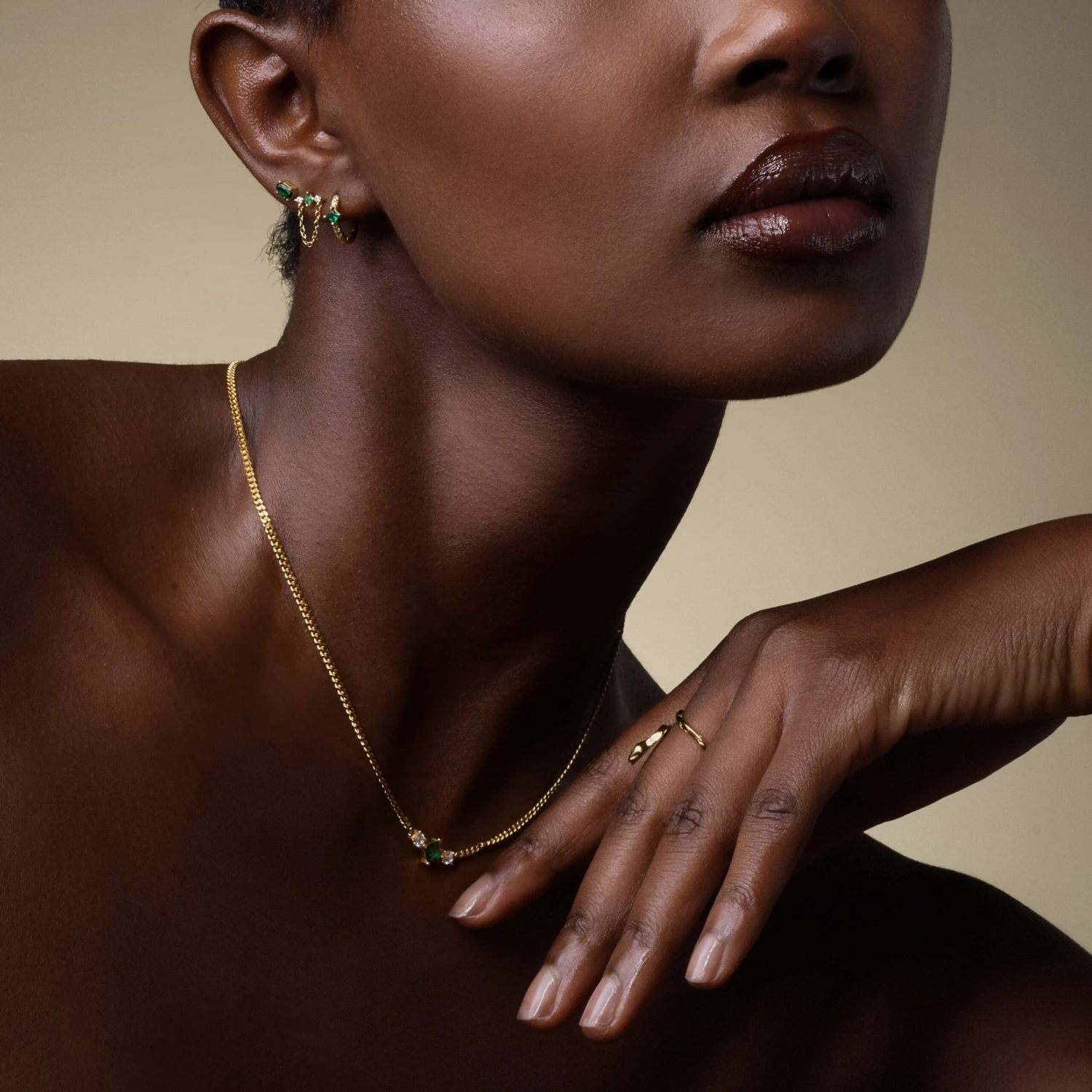 Rym, notre prodigieuse créole, est maintenant disponible avec sa pierre en zircon émeraude. 💚