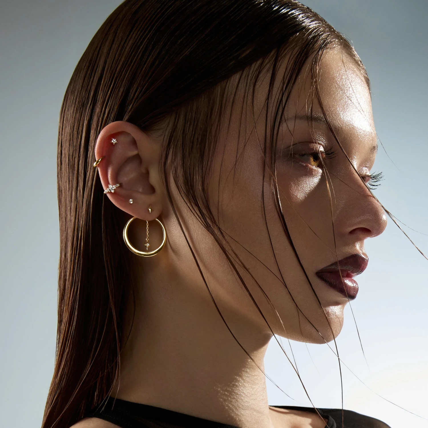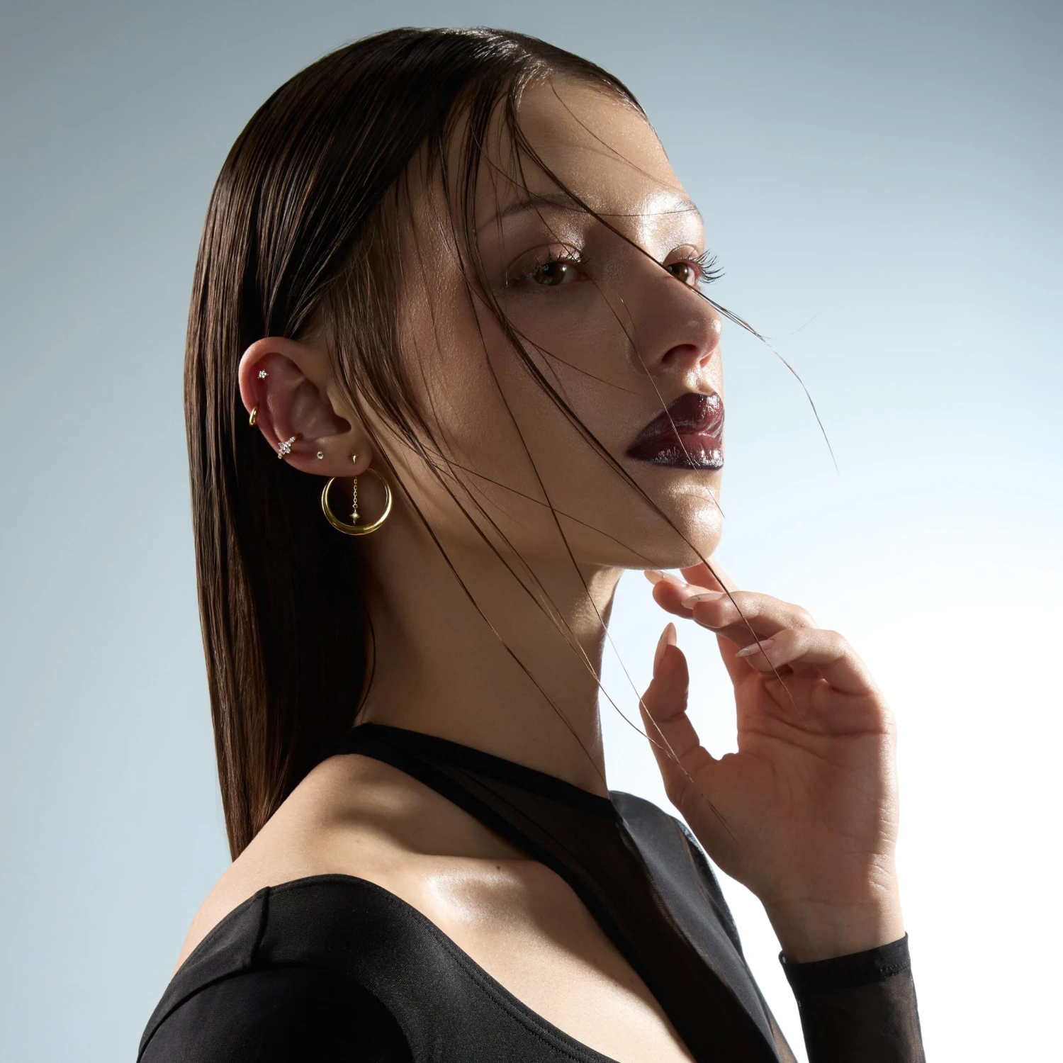 ・ Piercing Earfinity© : Mécanisme de fermeture threadless, la tige courbe se positionne dans la barre à l’avant du bijou.